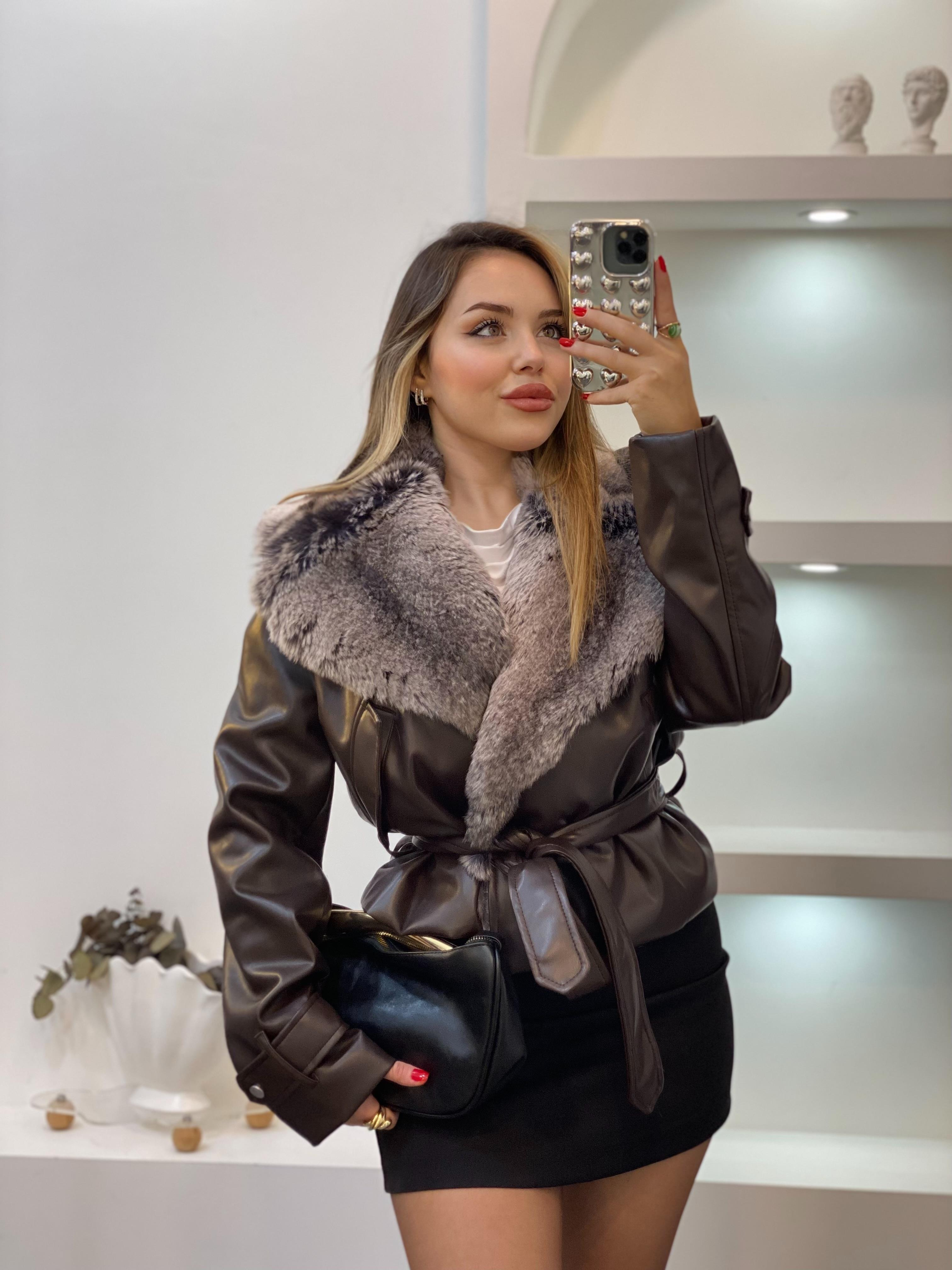 Acı Kahve Premium Kürk Yaka Deri Ceket