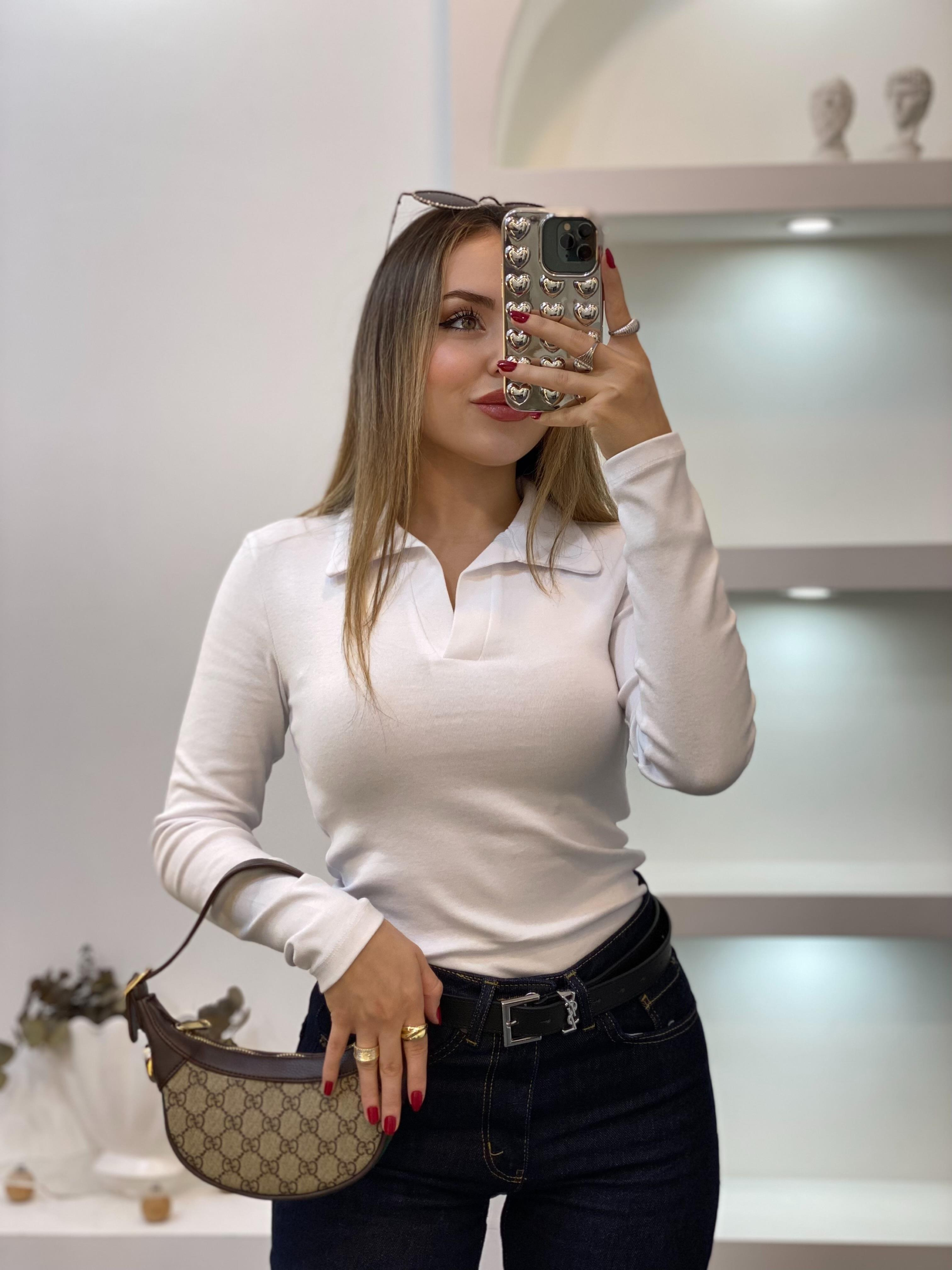 Beyaz Polo Yaka Basic Bluz (503)