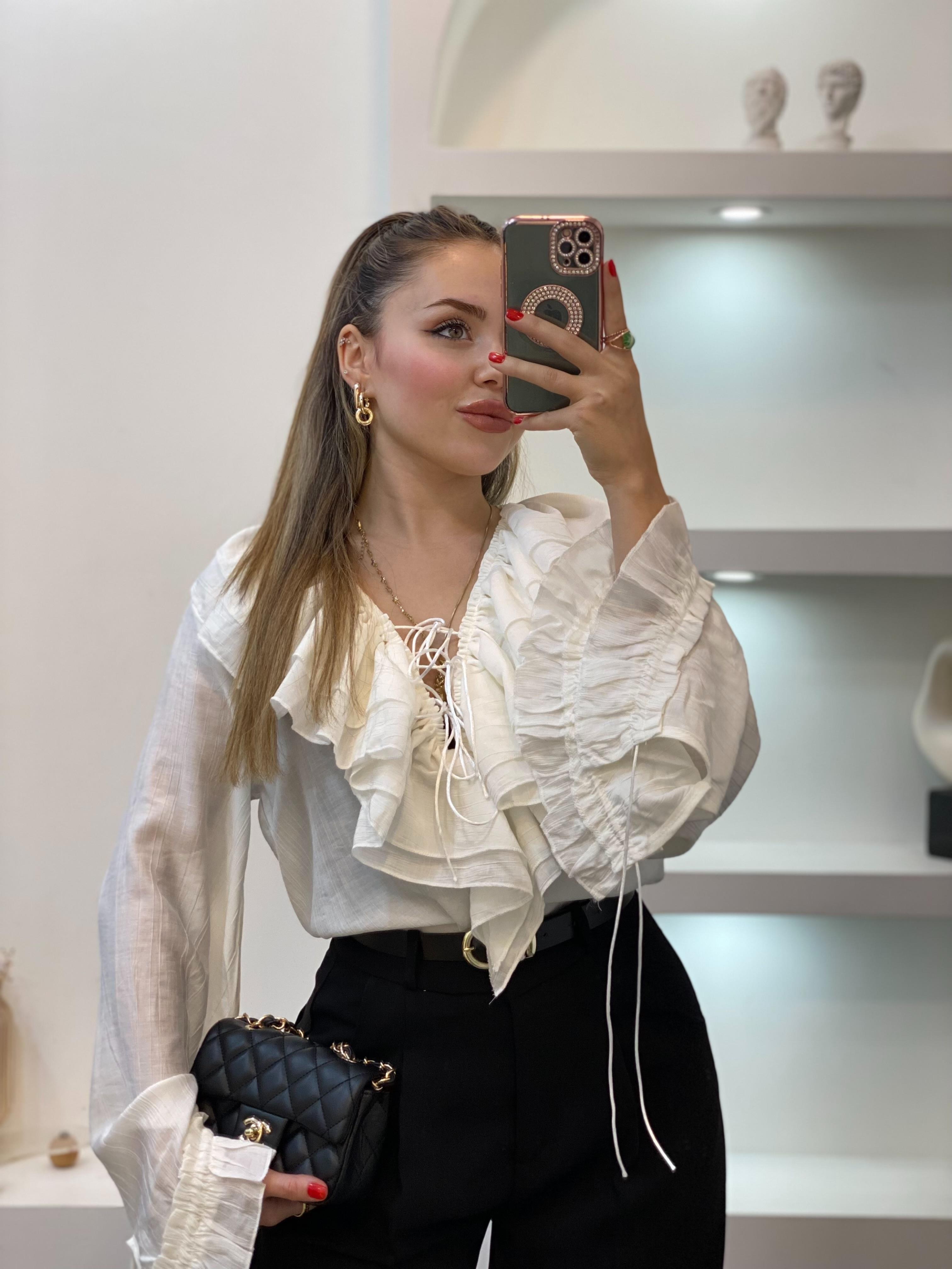 Beyaz Premium Kalite Volanlı Bluz