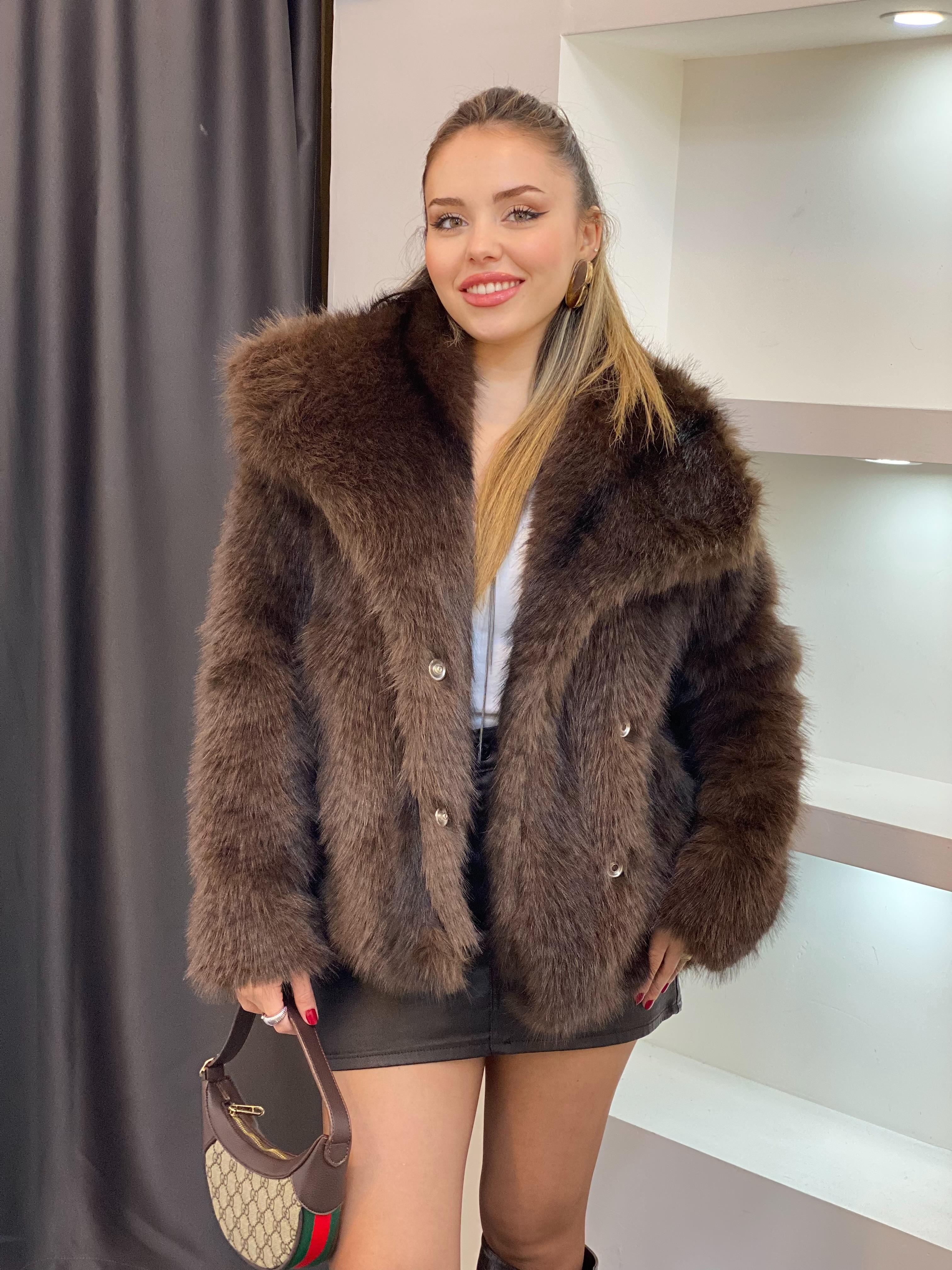 Koyu Kahve İthal Geniş Yaka Kürk (402)