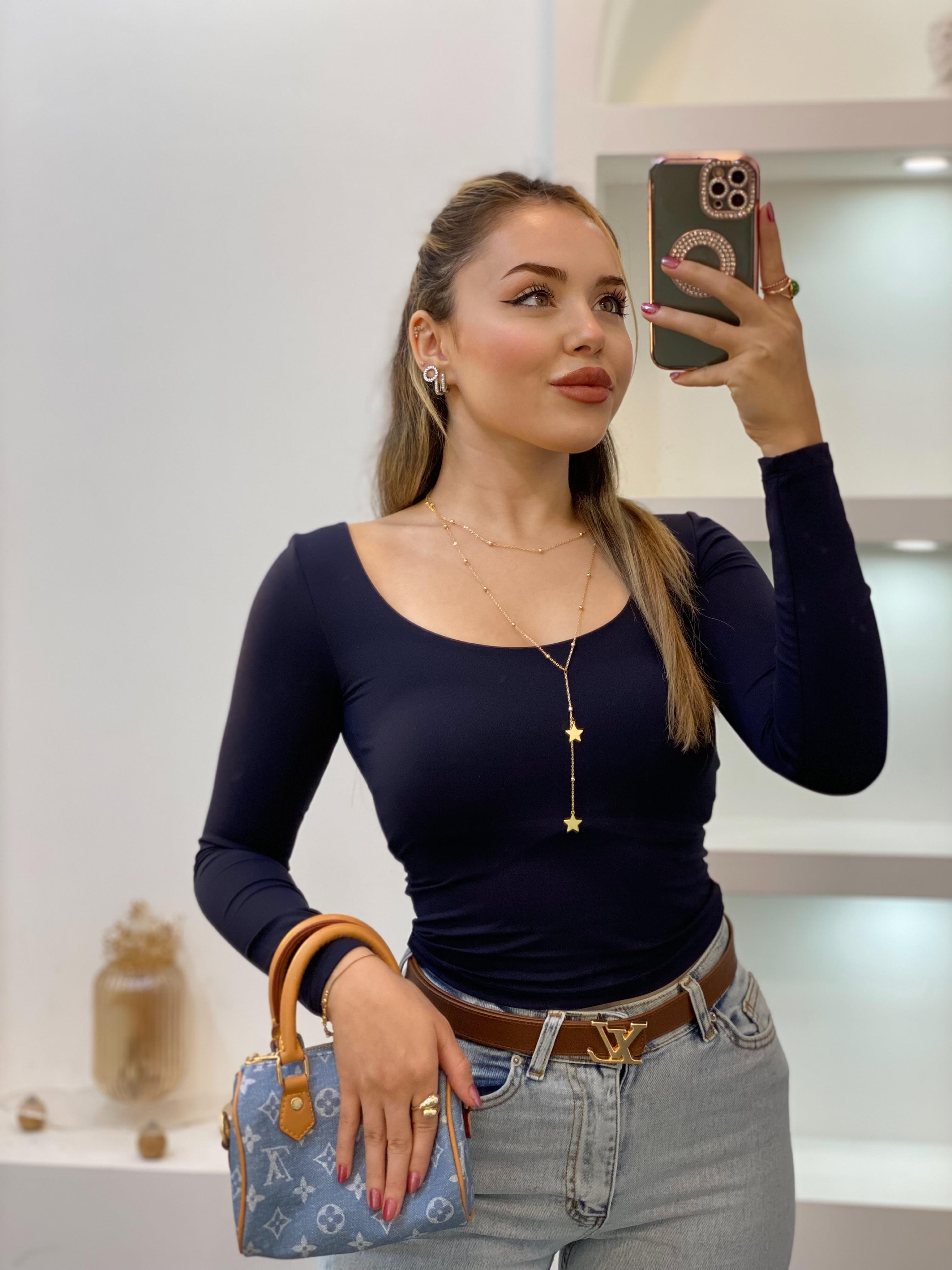 Lacivert Geniş Yaka Scuba Bluz