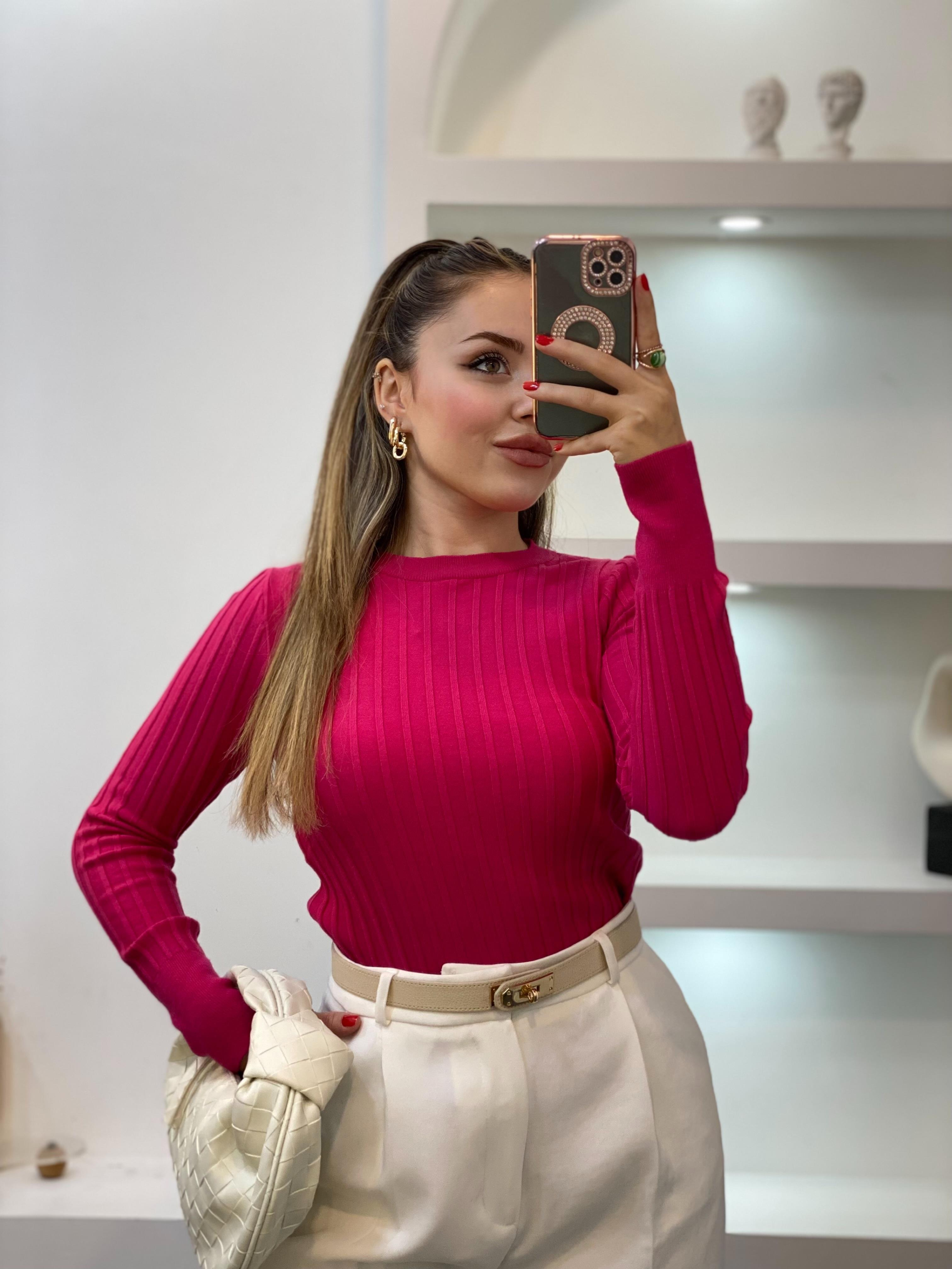 Pembe Yumoş Dokulu Triko Bluz