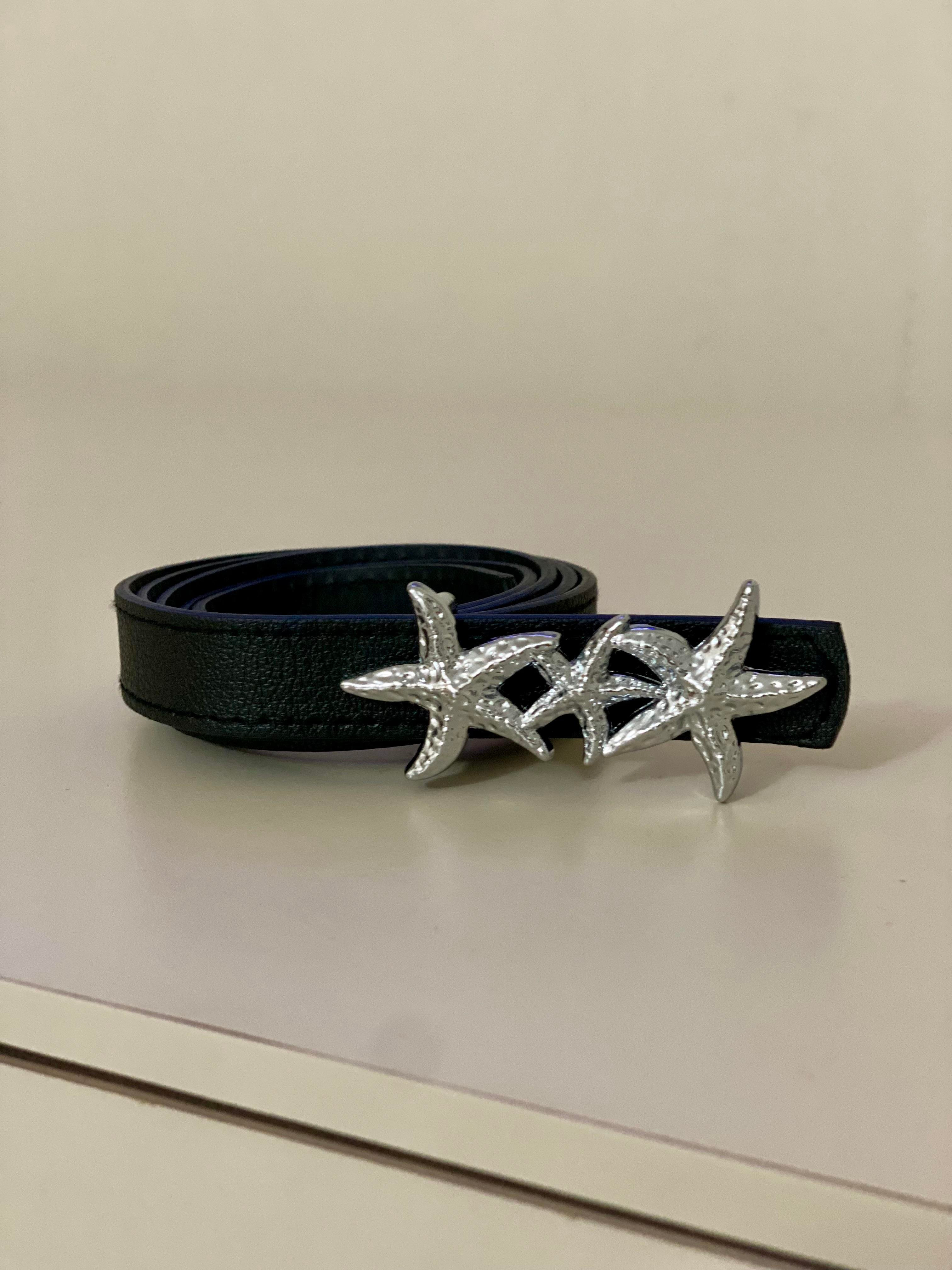 Siyah  Gümüş Yıldız Tokalı Kemer