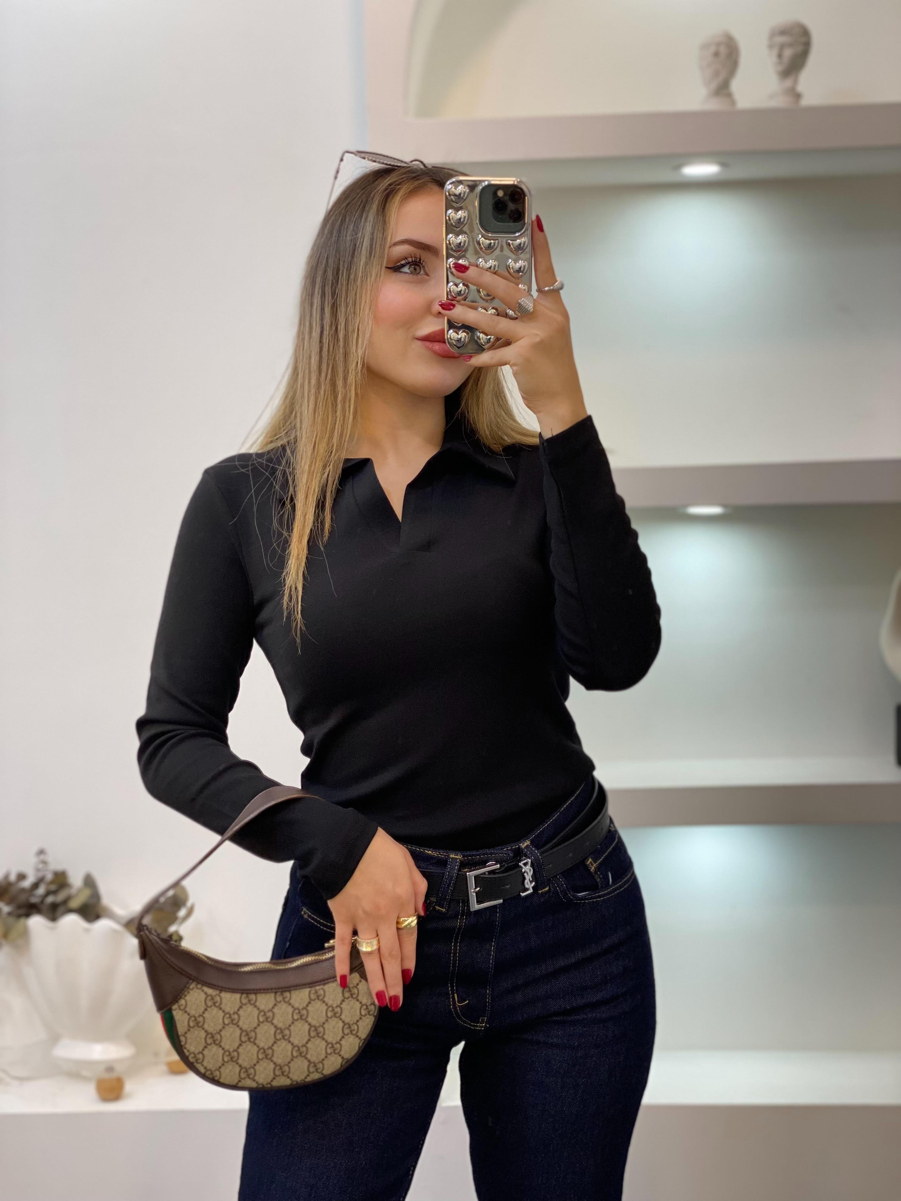 Siyah Polo Yaka Basic Bluz